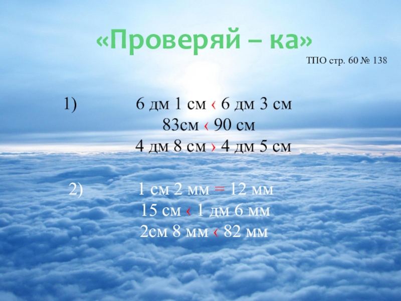 «Проверяй – ка»ТПО стр. 60 № 138     6 дм 1 см ‹ 6
