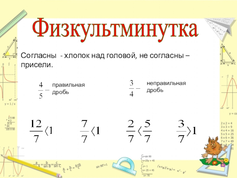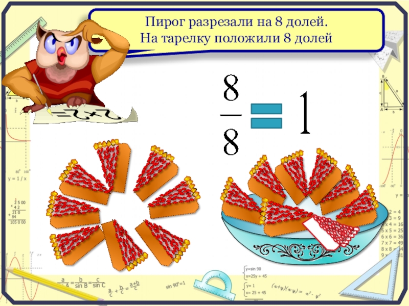 Дробь, в которой числитель равен знаменателю, называют неправильной дробью.