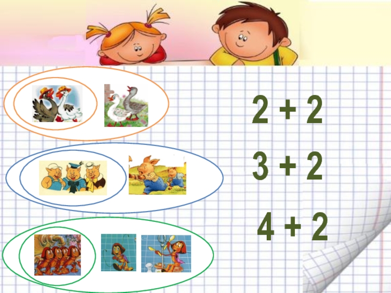 Презентация, доклад по математике на тему Прибавление числа 2 (1 класс)