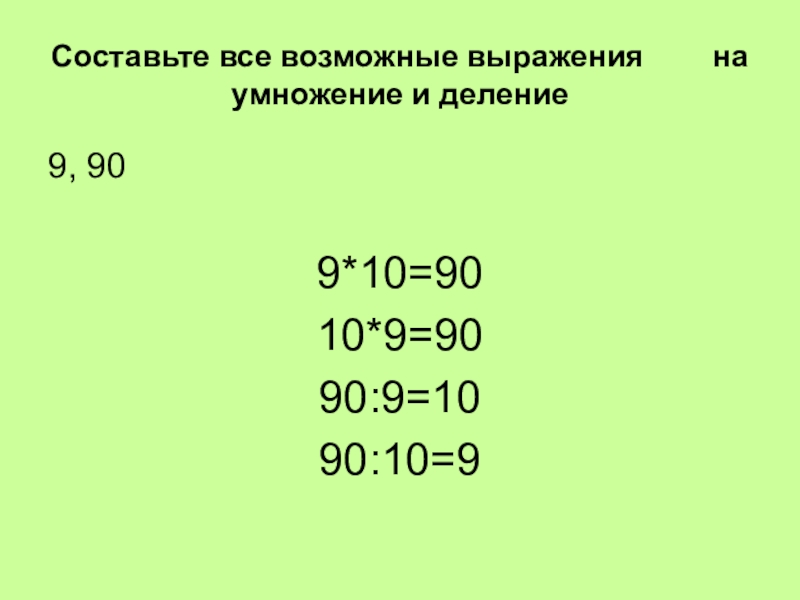 Составьте все возможные выражения    на умножение и деление 9, 909*10=9010*9=9090:9=1090:10=9