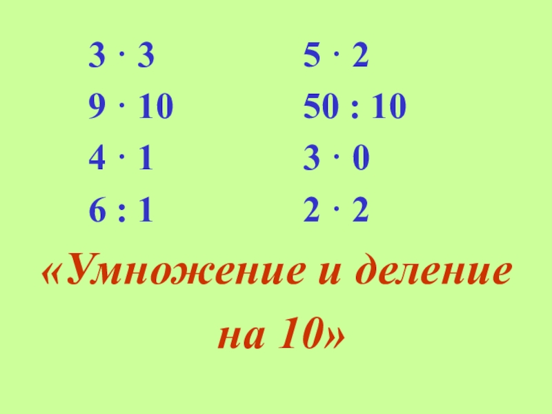 Презентация, доклад по математике на тему Приемы умножения и деления на число 10. (2 класс)