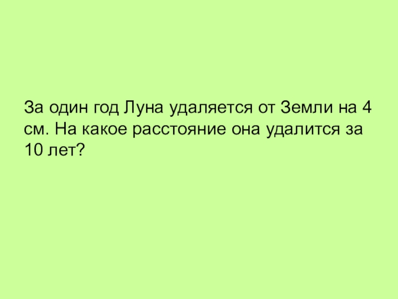 За один год Луна удаляется от Земли на 4 см. На какое расстояние она удалится за 10