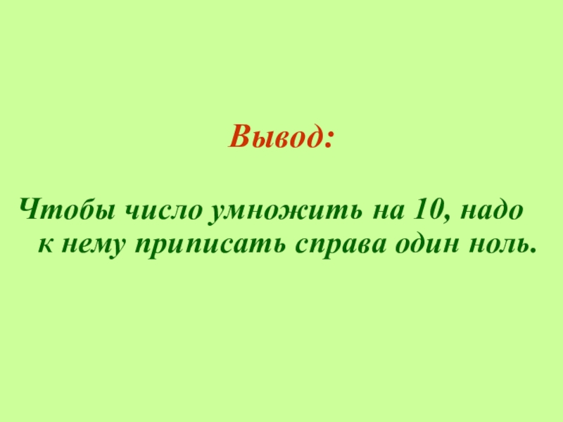 Вывод:Чтобы число умножить на 10, надо к нему приписать справа один ноль.