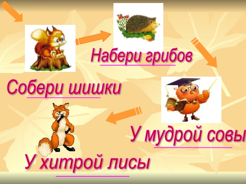 Собери шишки Набери грибов У мудрой совы У хитрой лисы