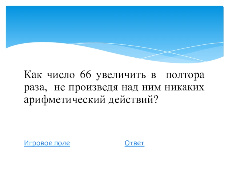 Слайд 3Как число 66 увеличить в полтора раза, не произведя над ним