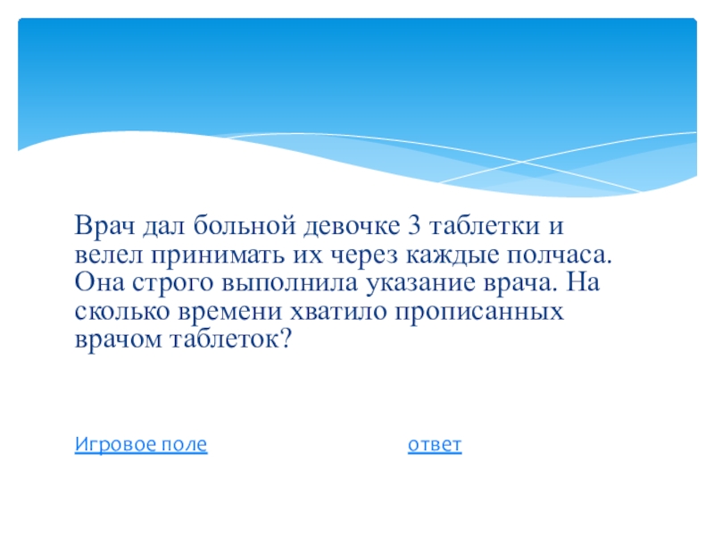 Слайд 41Врач дал больной девочке 3 таблетки и велел принимать их через