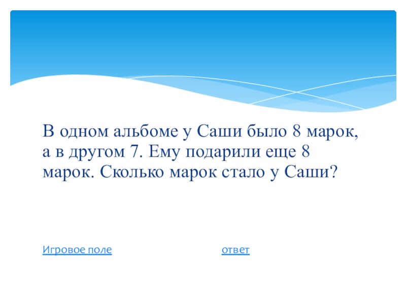 Слайд 5В одном альбоме у Саши было 8 марок, а в другом