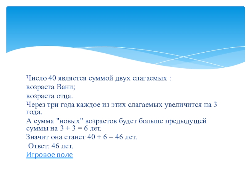 Слайд 8Число 40 является суммой двух слагаемых :