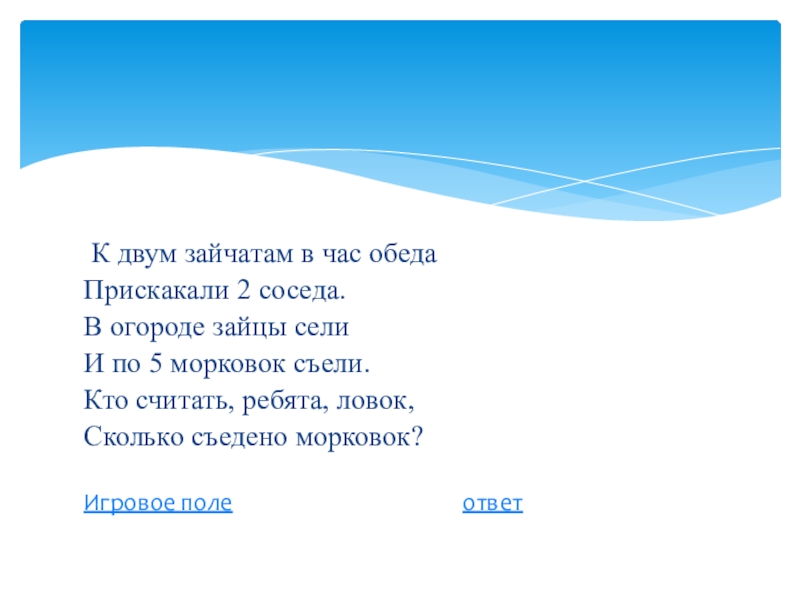 Слайд 13 К двум зайчатам в час обеда