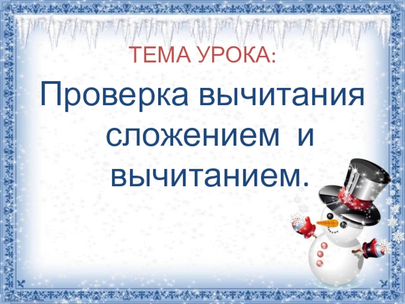 ТЕМА УРОКА: Проверка вычитания сложением и вычитанием.