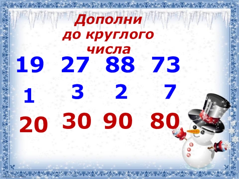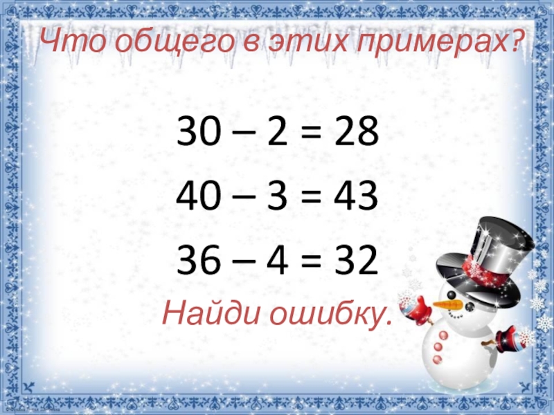 «Проверь примеры Снеговичка». 67-7=60 60+7=67 67-60=60