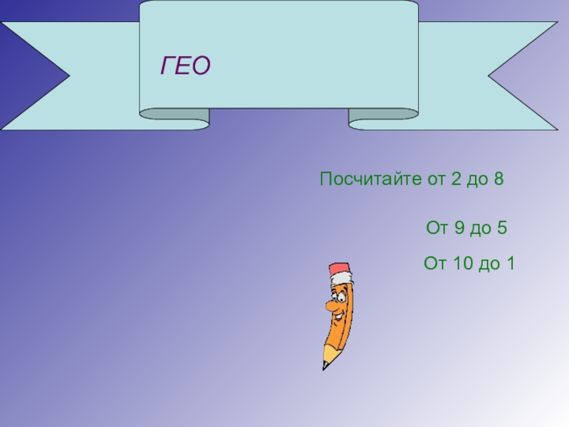 Посчитайте от 2 до 8 От 9 до 5 От 10 до 1ГЕО
