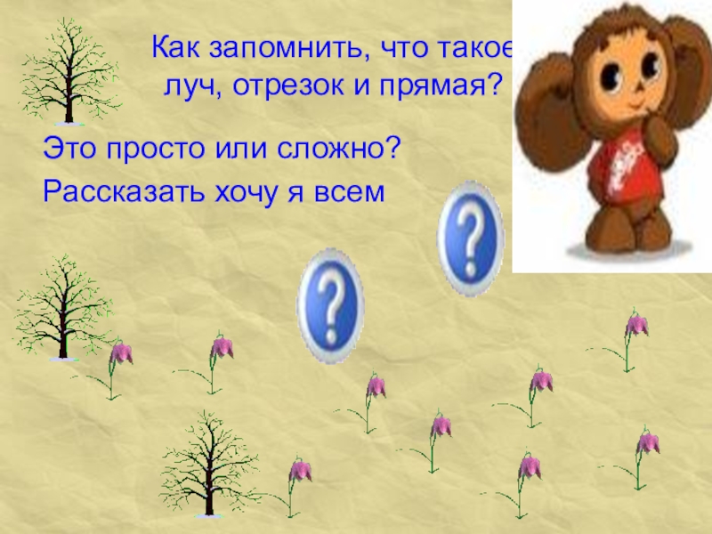 Как запомнить, что такое  луч, отрезок и прямая?Это просто или сложно?Рассказать хочу я всем