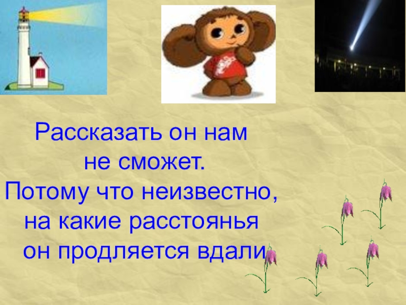 Слайд 17Рассказать он нам не сможет. Потому что неизвестно, на какие расстоянья
