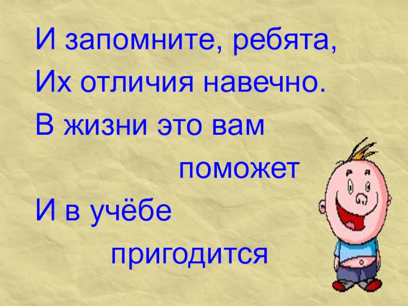 И запомните, ребята, Их отличия навечно.В жизни это вам
