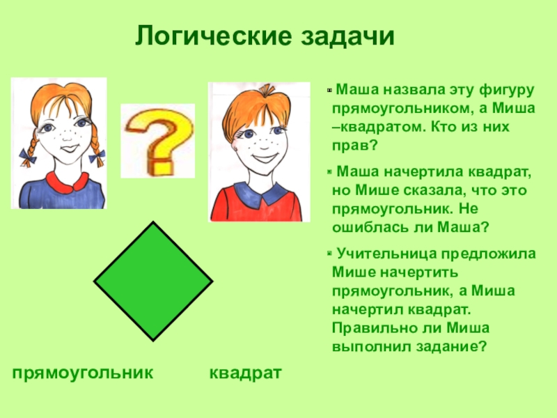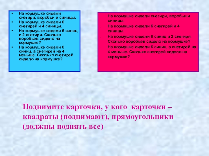 Поднимите карточки, у кого карточки – квадраты (поднимают), прямоугольники (должны поднять все)