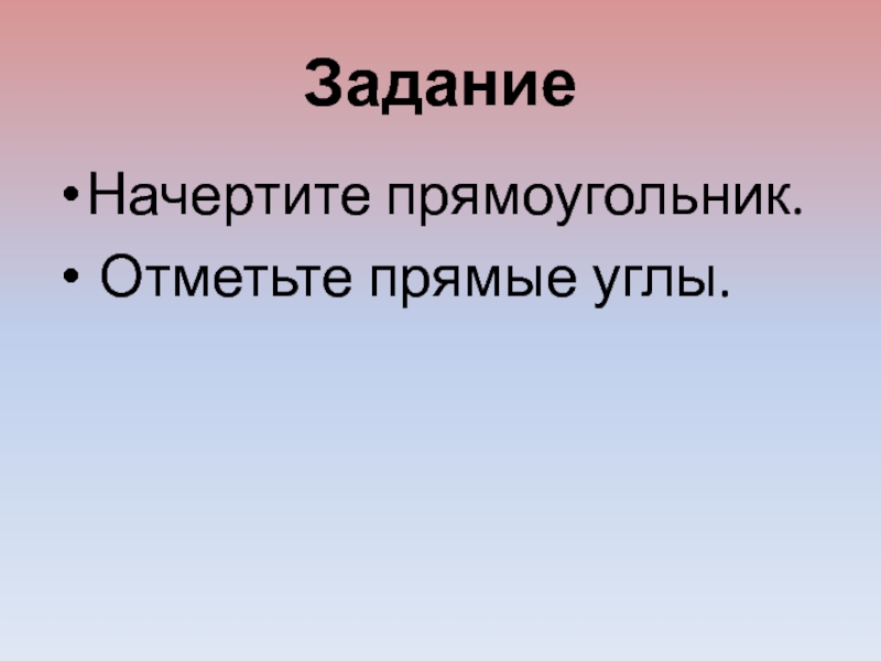 ЗаданиеНачертите прямоугольник. Отметьте прямые углы.