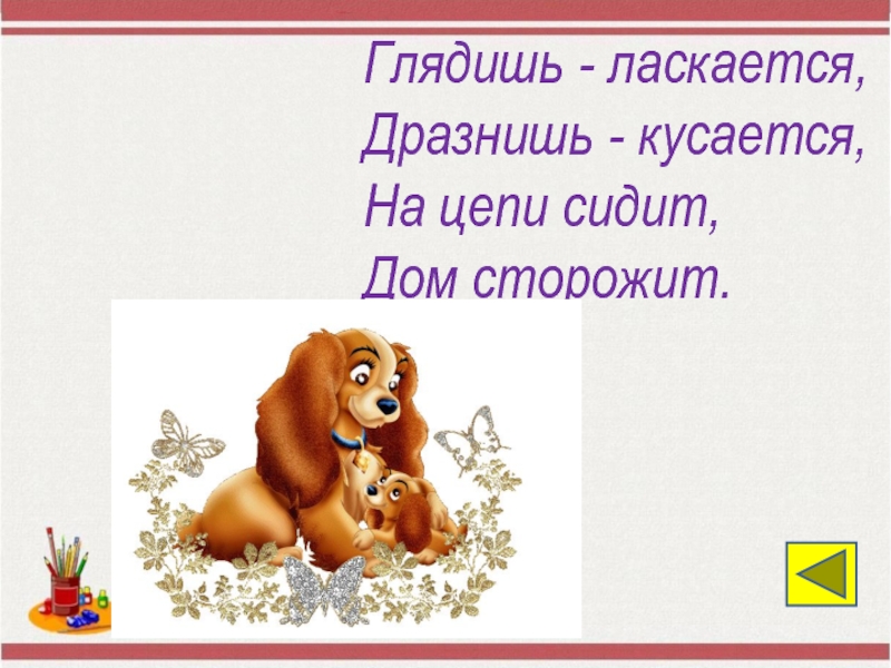 Глядишь - ласкается,Дразнишь - кусается,На цепи сидит,Дом сторожит.
