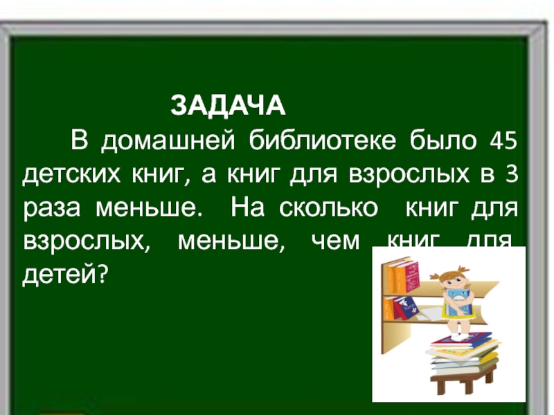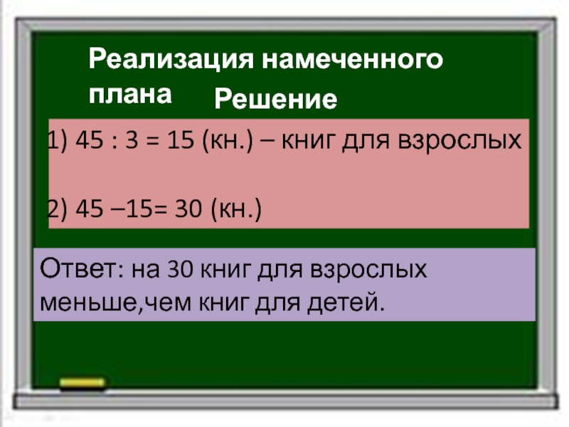 Ответ: на 30 книг для взрослых меньше,чем книг для детей.