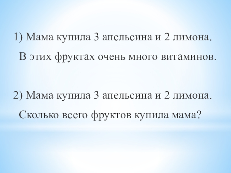 2) Мама купила 3 апельсина и 2 лимона.
