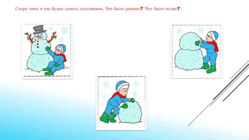 Слайд 7Скоро зима и мы будем лепить снеговиков. Что было раньше? Что