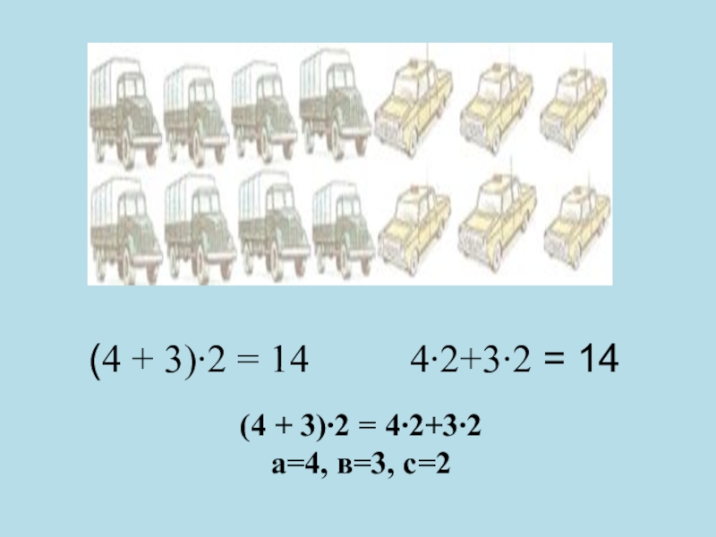 чтобы умножить сумму на число, можно умножить на это число каждое слагаемое и сложить получившиеся произведения