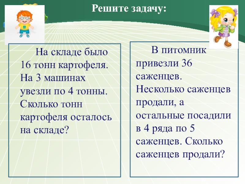 В питомник привезли 36 саженцев. Несколько саженцев продали, а остальные посадили в 4 ряда по 5 саженцев. Сколько саженцев продали?