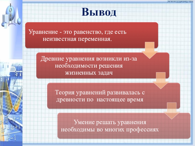 РЕШИТЬ УРАВНЕНИЕ – значит найти такое числовое значение переменной, при котором равенство будет верным.