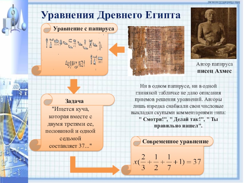 "Ищется куча, которая вместе с двумя третями ее, половиной и одной седьмой составляет 37..."