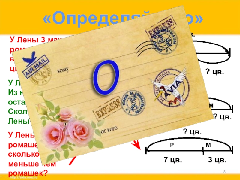 У Лены 3 мака и 7 ромашек. На сколько маков меньше чем ромашек?