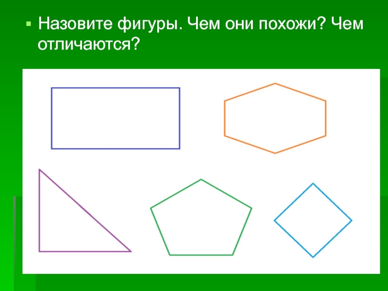 Назовите фигуры. Чем они похожи? Чем отличаются?