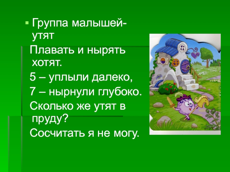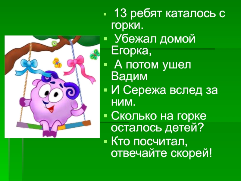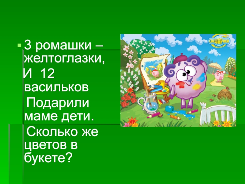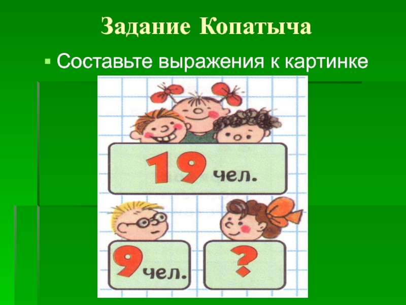 Первое слагаемое 9, второе 5. Найдите сумму.