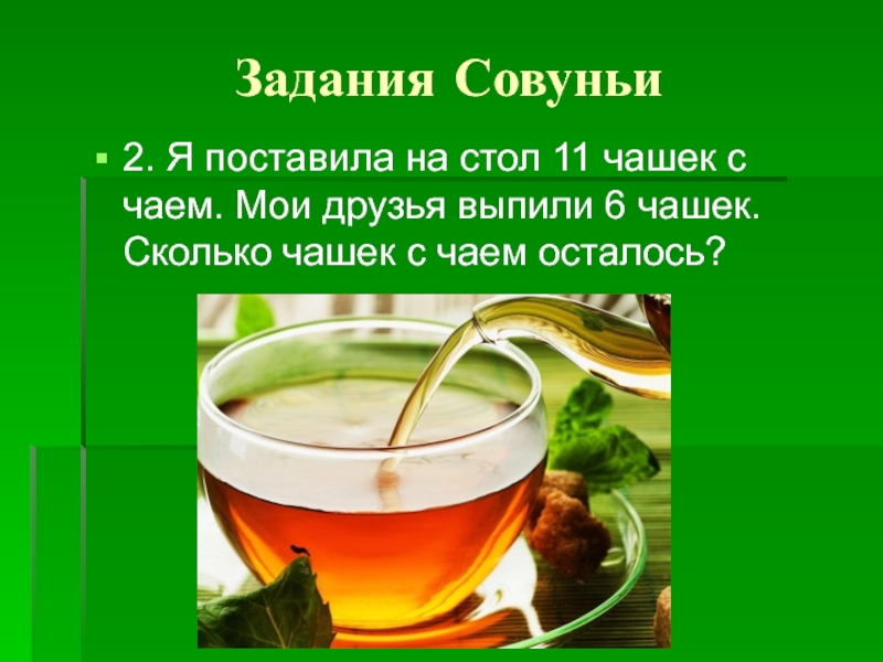 2. Я поставила на стол 11 чашек с чаем. Мои