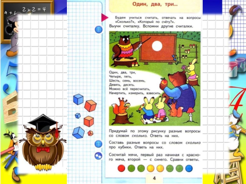 Презентация, доклад по математике на тему Счет предметов 1 класс