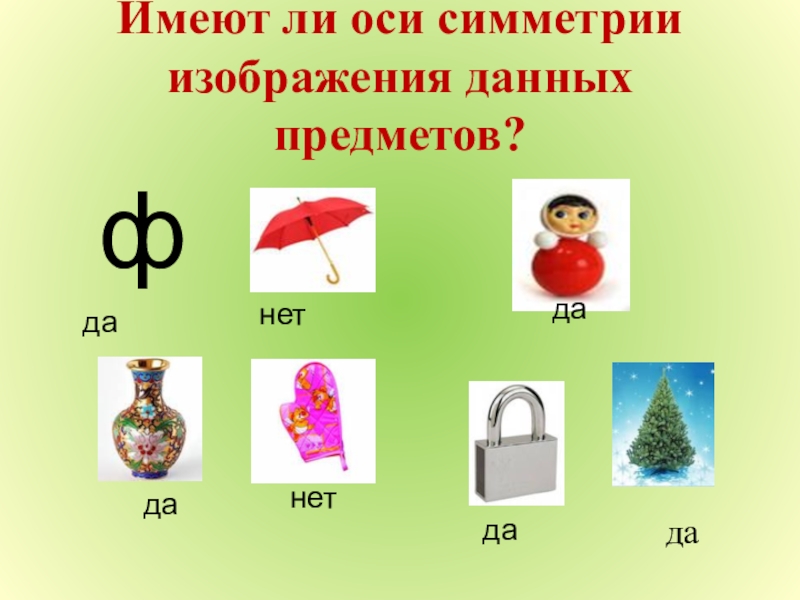 Имеют ли оси симметрии изображения данных  предметов?дафданетдаданетда