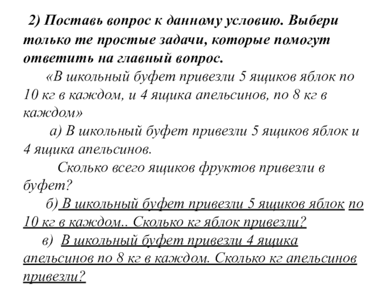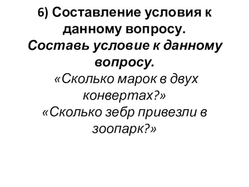 Слайд 227) Постановка вопроса к данному условию.