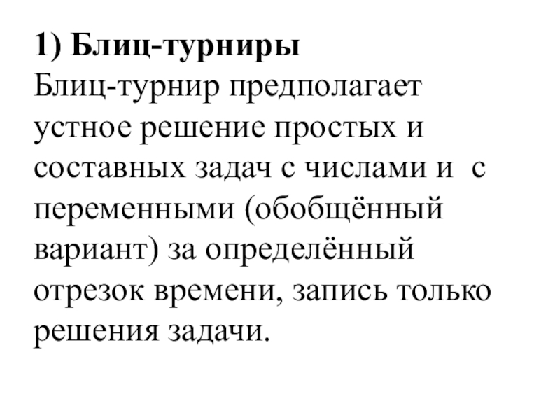 Блиц-турнир предполагает устное решение простых и составных задач с