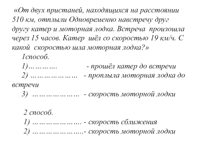 Слайд 81 «От двух пристаней, находящихся на расстоянии 510 км, отплыли Одновременно