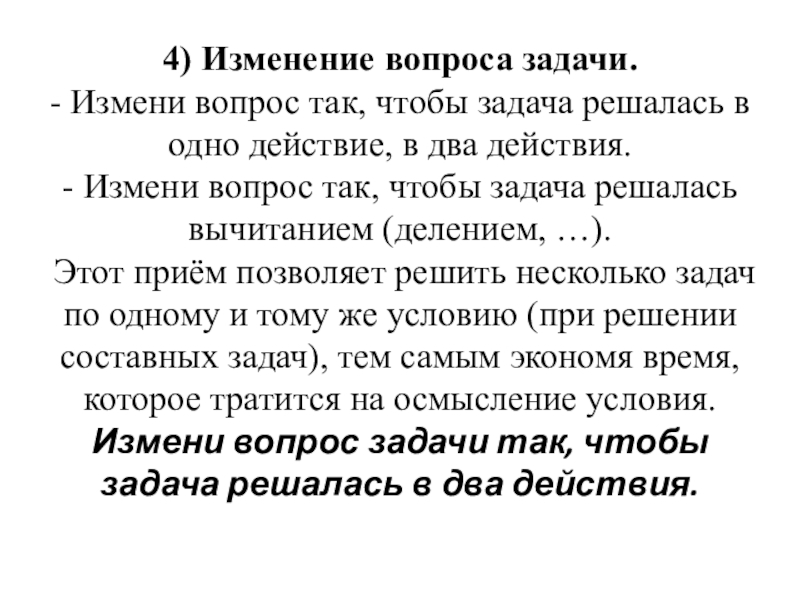 Слайд 704) Изменение вопроса задачи.