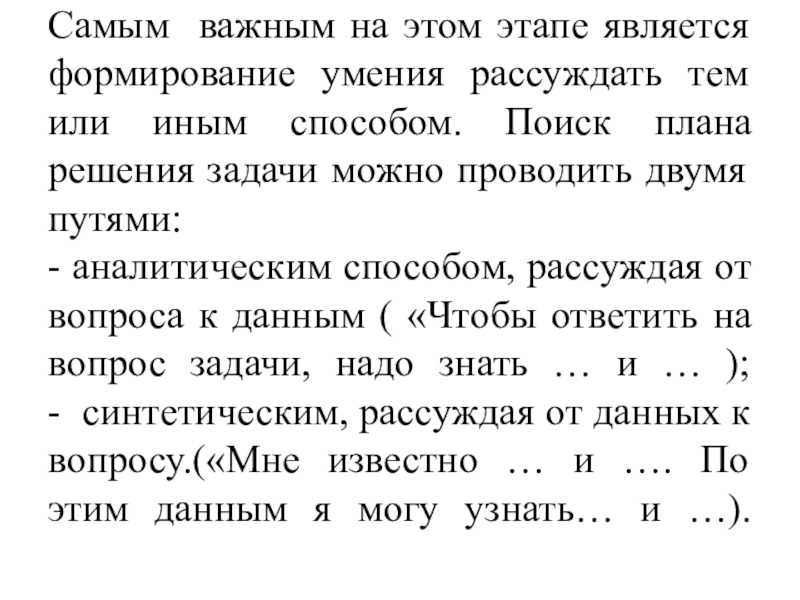 3) составлять план решения задачи посредством рассуждений;