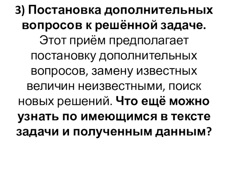 Слайд 693) Постановка дополнительных вопросов к решённой задаче.