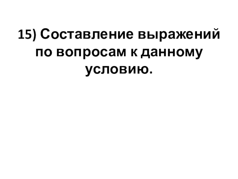 Слайд 8915) Составление выражений по вопросам к данному условию.
