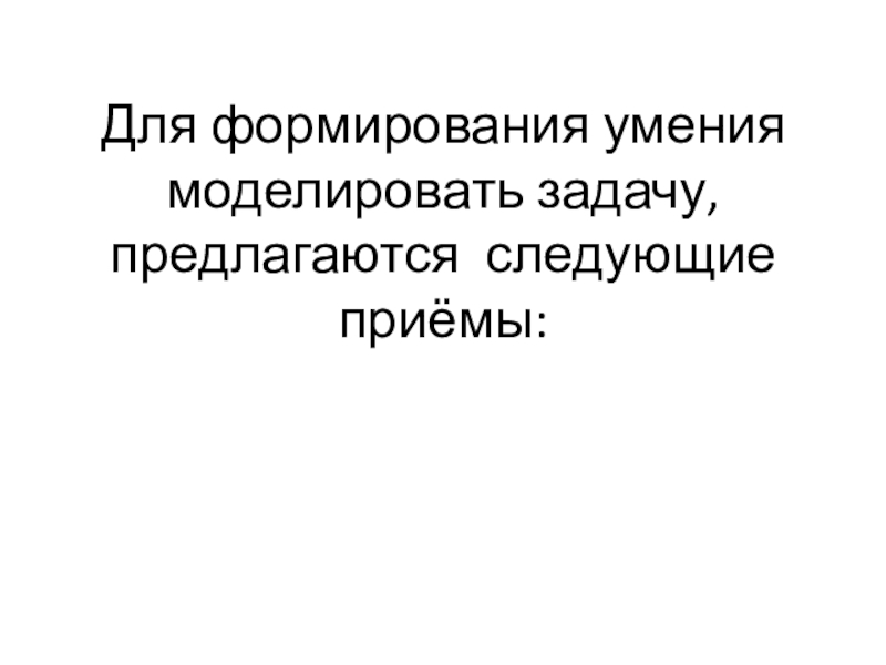 Слайд 28Для формирования умения моделировать задачу, предлагаются следующие приёмы:
