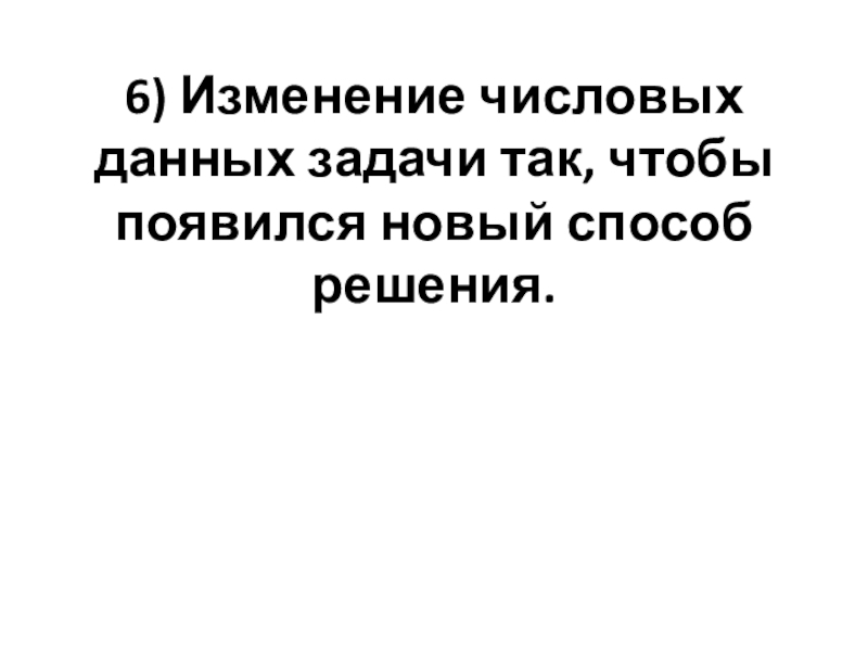 Слайд 726) Изменение числовых данных задачи так, чтобы появился новый способ решения.