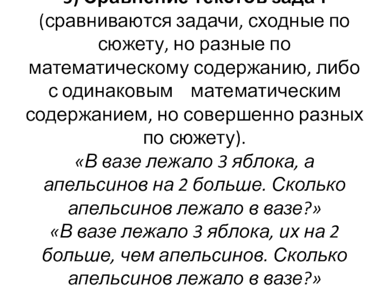 Слайд 205) Сравнение текстов задач (сравниваются задачи, сходные по сюжету, но разные