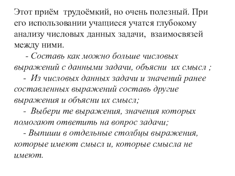 Слайд 92Этот приём трудоёмкий, но очень полезный. При его использовании учащиеся учатся