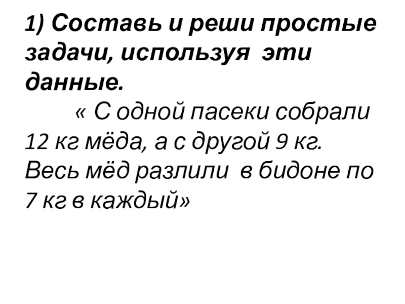 - Из числовых данных задачи и значений ранее составленных выражений составь другие выражения и объясни их смысл;