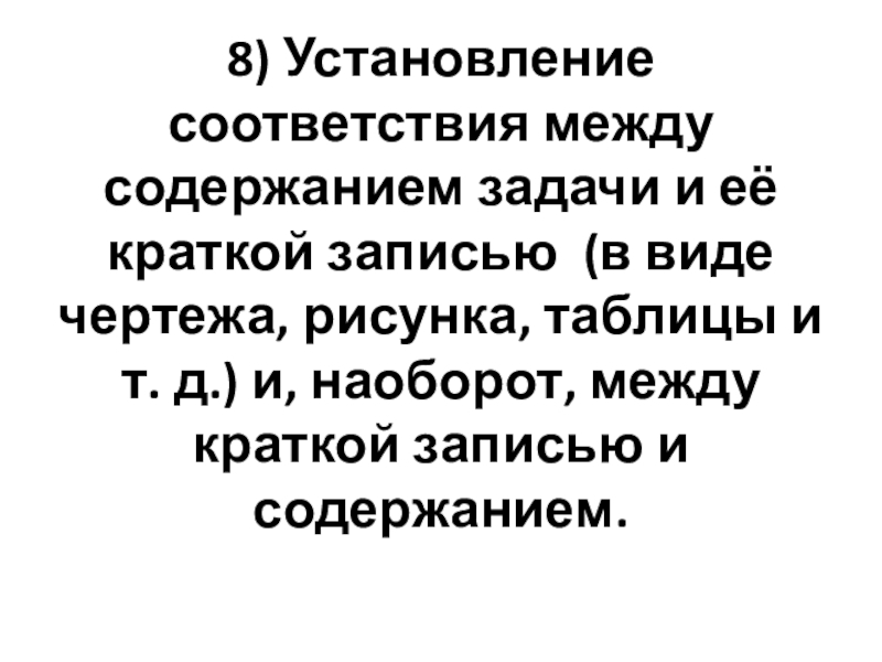 Слайд 848) Установление соответствия между содержанием задачи и её краткой записью (в
