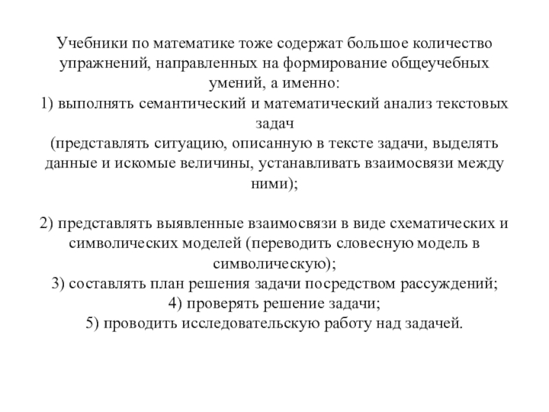 Слайд 4Учебники по математике тоже содержат большое количество упражнений, направленных на формирование