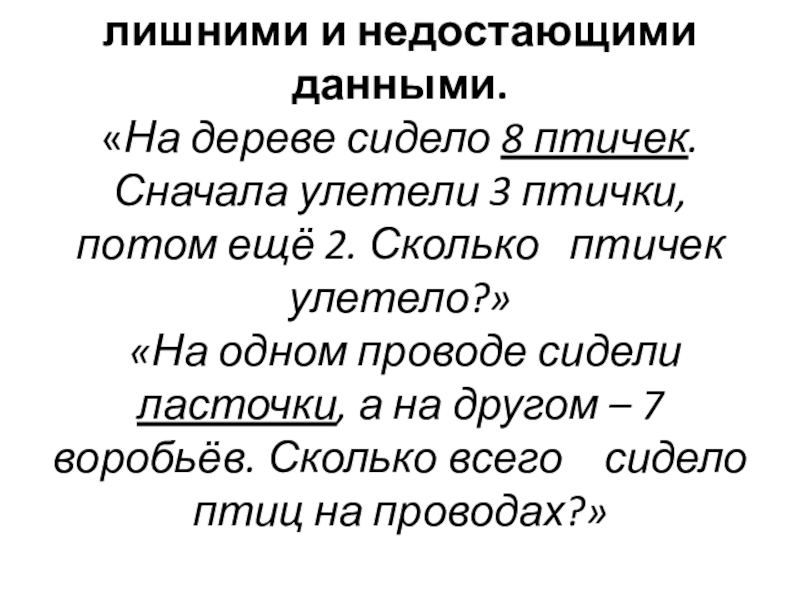 Слайд 161) Анализ текстов задач с лишними и недостающими данными.